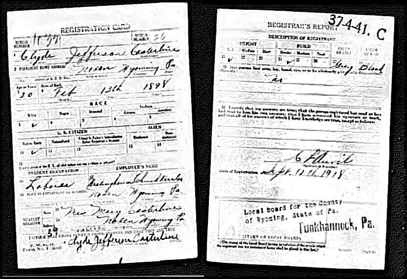 Clyde Jefferson Casterline WW1 Registration Card