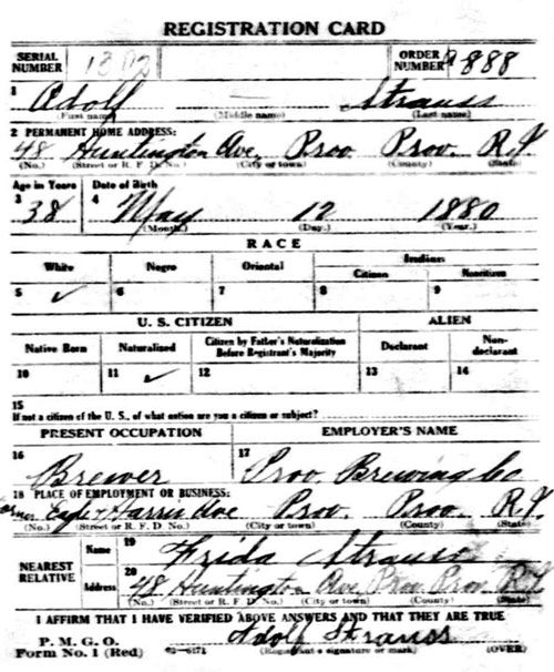 Adolph Strauss WW1 Registration Card