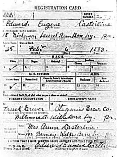 Edward Eugene Casterline WW1 Draft Card