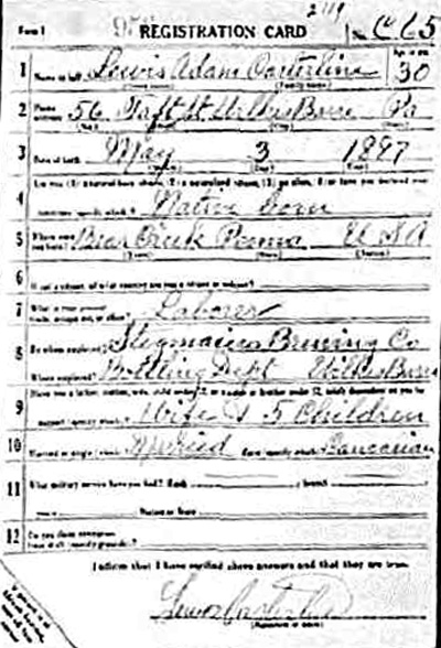 Lewis Adam Casterline WW1 Draft Card