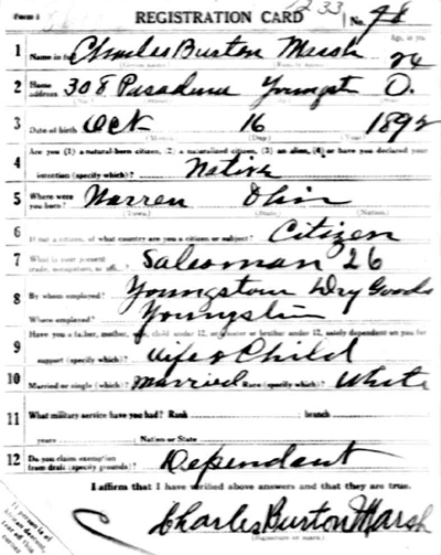 Charles B. Marsh World War 1 Draft Registration