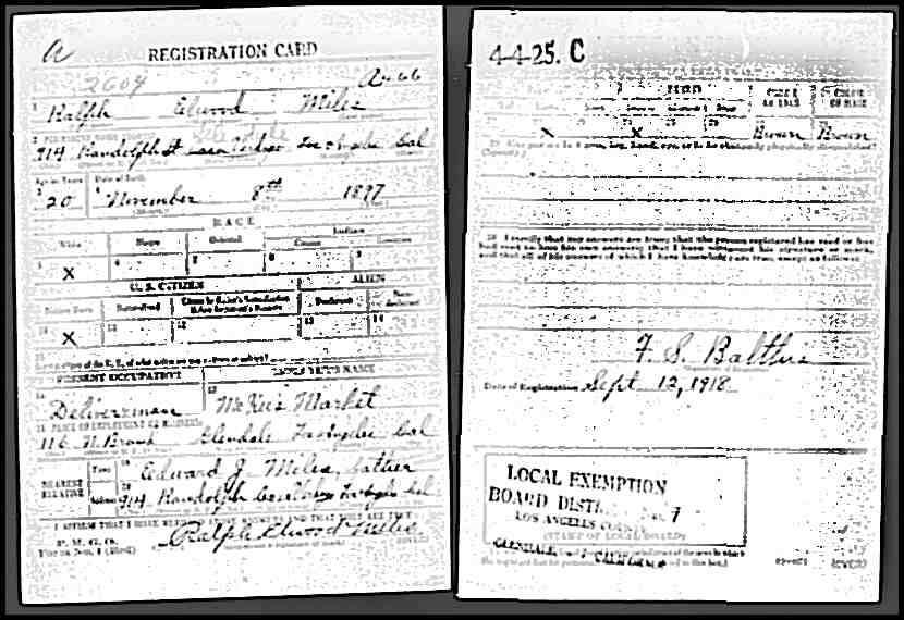 Ralph Elwood Miles WW1 Registration Card
