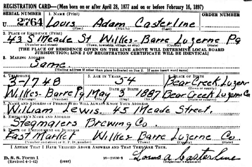 Louis Adam Casterline World War II Selective Service Registration