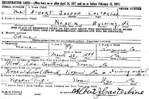 Albert Joseph Casterline World War II Selective Service Registration