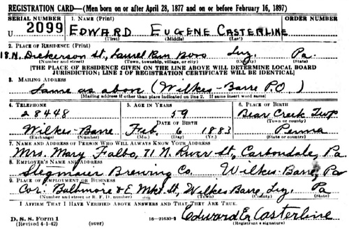 Edward Eugene Casterline World War II Selective Service Registration