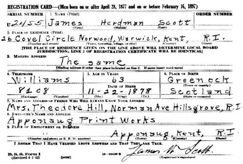James Herdman Scott World War II Selective Service Registration