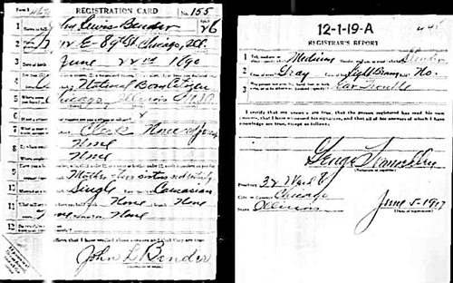 John Lewis Bender WWI Draft Card