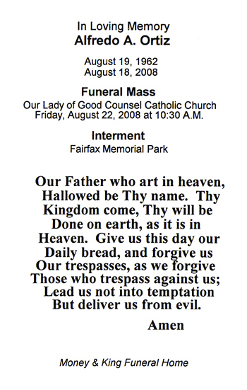Alfredo Ortiz Funeral Card