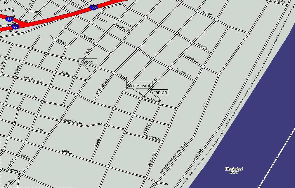 St Louis Map Showing Locations of Granich and Marasovich Families