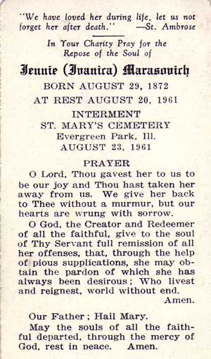 Ivanica Prkich Marasovich Funeral - 1961