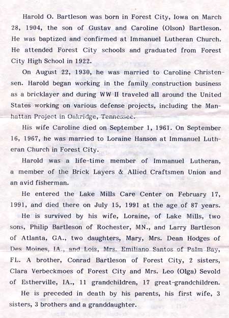 Harold Otto Bartleson Biography