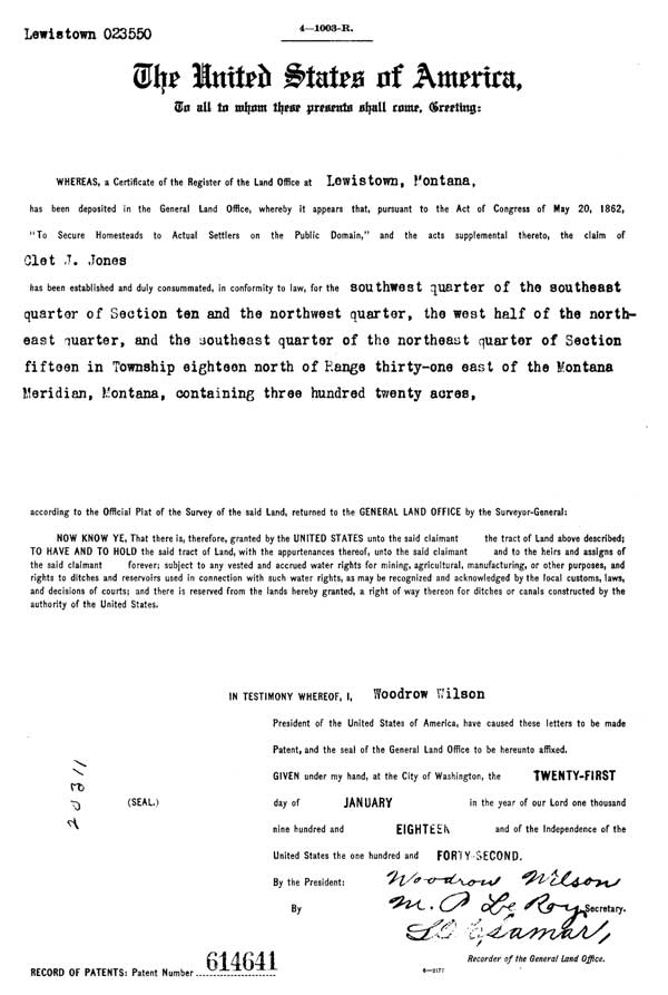 Clet Jones Land Patent