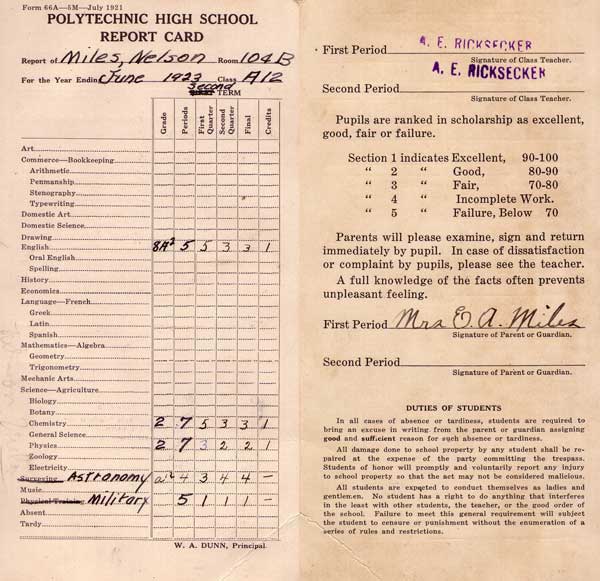 Nelson's Final Report Card June 1923