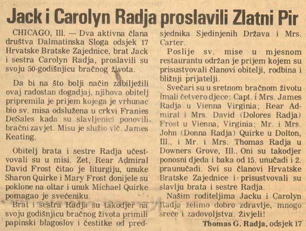 Croatian Translation of Article in the CFU Zajedničar - 1979