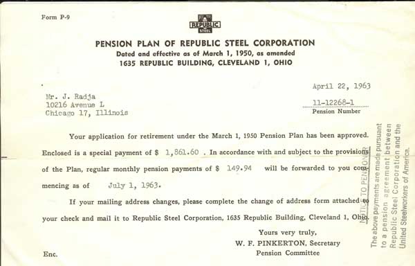 The Republic Steel Corporation Pension Letter