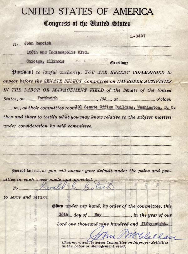 The Senate Command to Appear - 1958